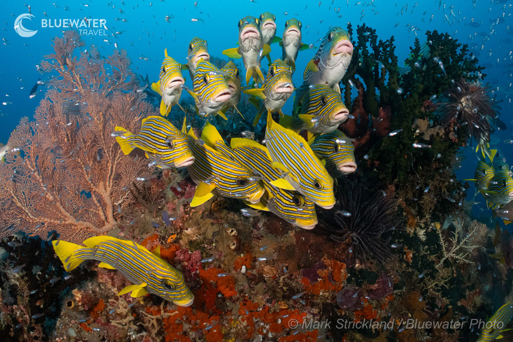 “There were SO many fish!” That was a constantly reoccurring comment throughout the wonderful 12 days we recently spent exploring the stunning reefs of Raja Ampat with Bluewater Travels February 2025 Photo Workshop. Located at the eastern end of the vast Indonesian archipelago, this region, which is at the epicenter of the famed “Coral Triangle”, is widely considered to have the world’s greatest marine biodiversity. It also features stunning topside scenery, thriving coral gardens, a huge range of invertebrate life, and unique underwater habitats. It’s also the only place I’ve dived where I’ve never once been cold underwater, as the temperature never dropped below a balmy 85 Fahrenheit!
