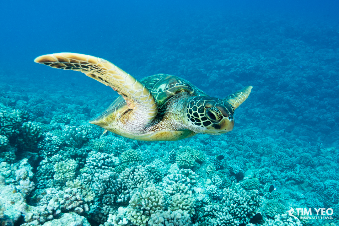 Observe respectfully: Let wildlife come to you. Don’t chase turtles or block a ray’s path.