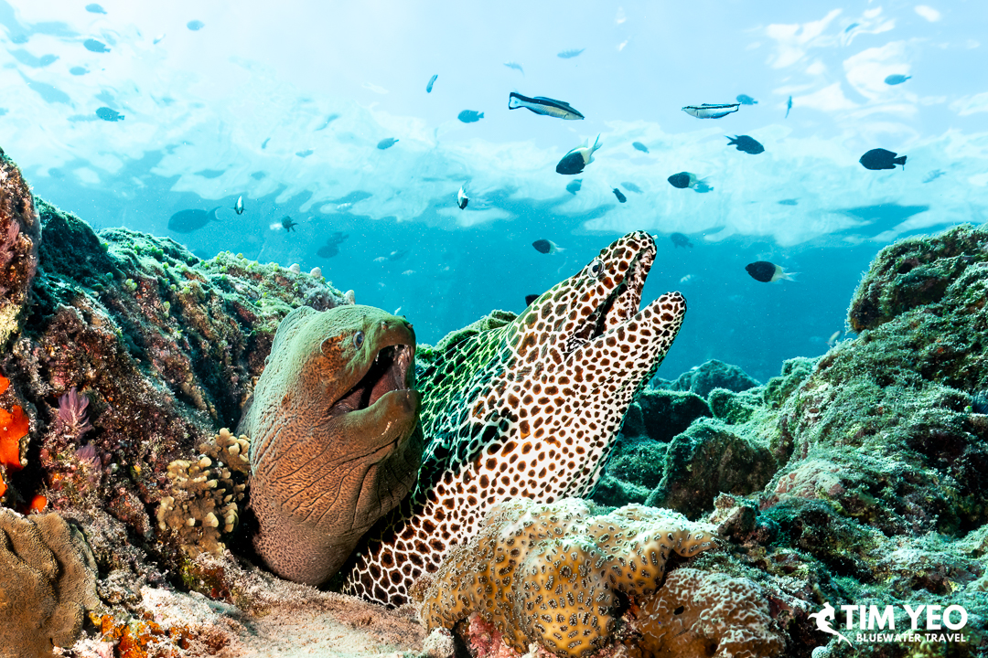 Maldives: In Baa Atoll, Hanifaru Bay is world-famous for manta ray aggregations between June and October. In South Ari Atoll, whale sharks appear year-round. Crystal-clear lagoons and house reefs make it easy for beginners to explore with minimal currents.
