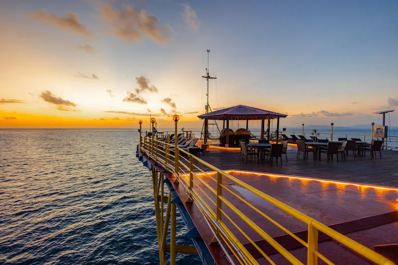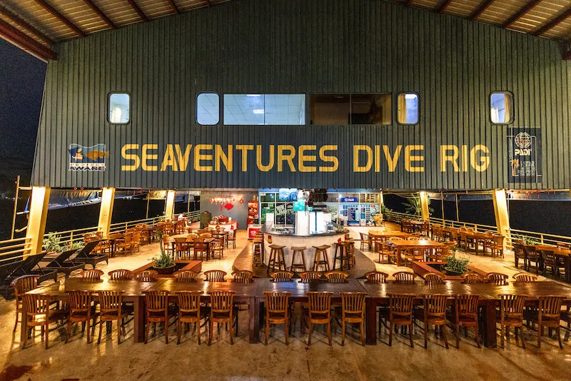 Seaventures Dive Rig is one of the most unique dive platforms in the world, offering a singular experience where divers can simply wake up, gear up, and jump directly off the rig into the vibrant house reef below.