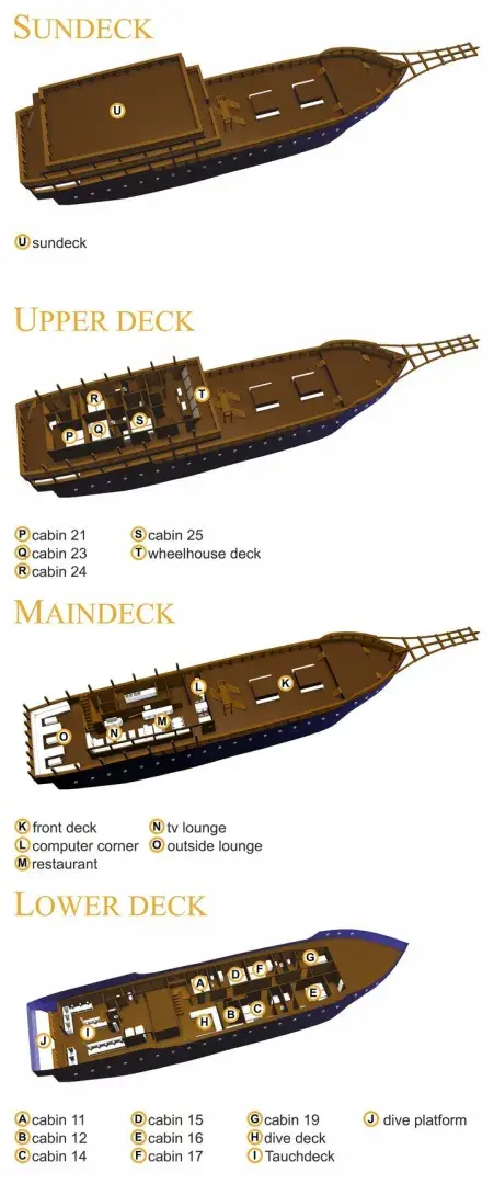 - Last diving day with a maximum of 2 dives and cruise to disembarkation harbor.