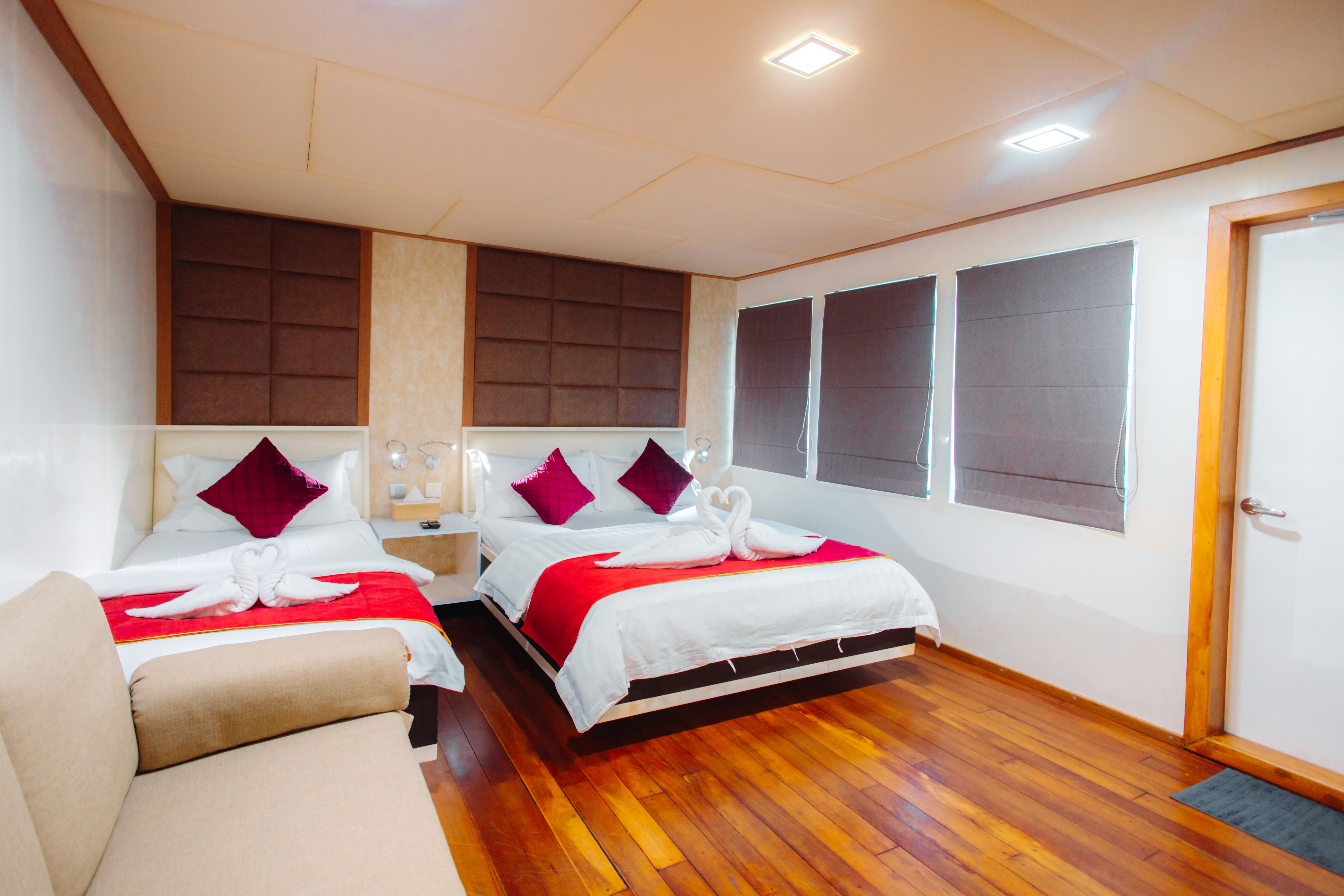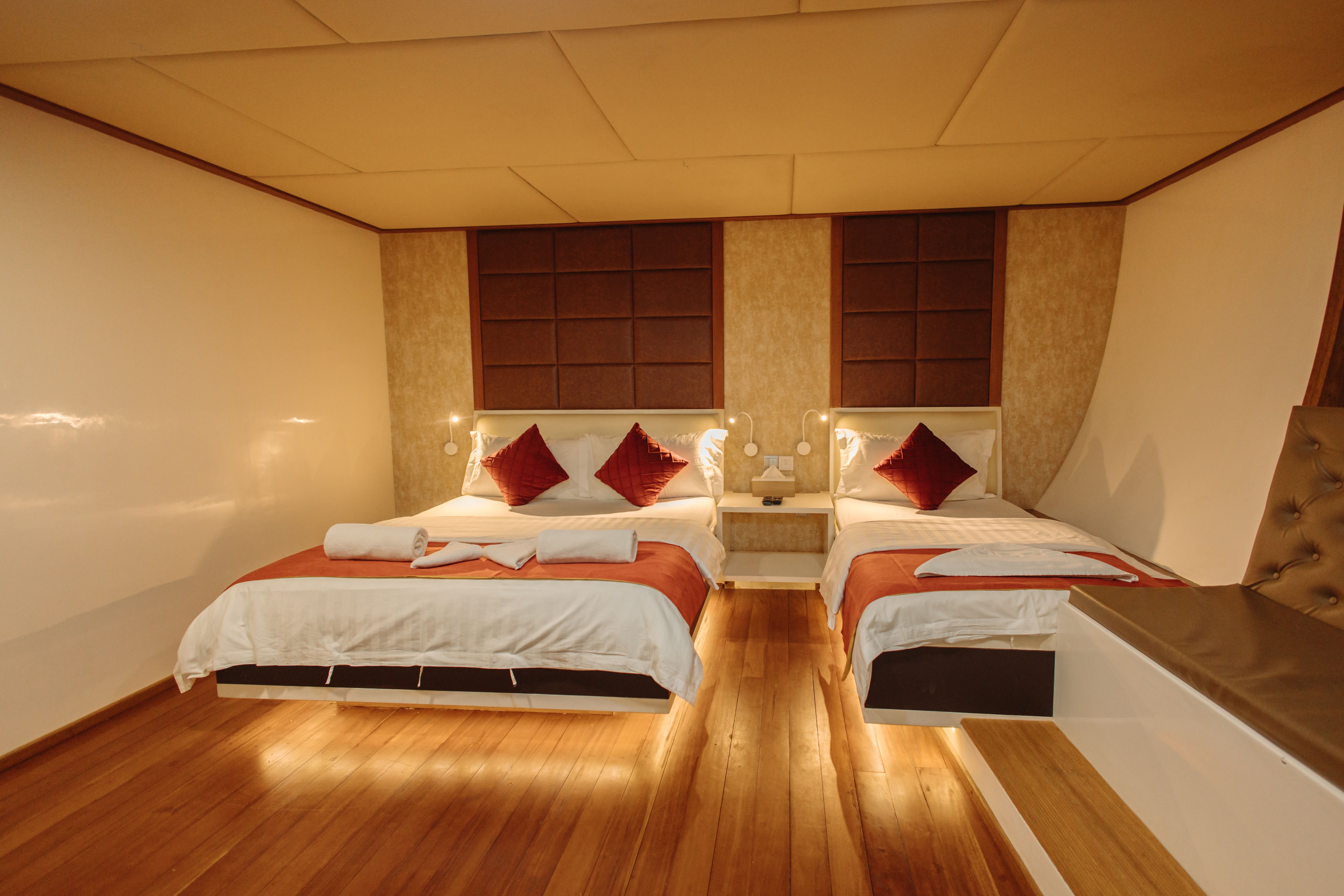 MV Adora offers a luxurious and comfortable accommodation experience designed to enhance your stay during the scuba diving liveaboard in the Maldives. The vessel features three types of well-appointed cabins, ensuring a range of options to suit various preferences. The Standard Room provides a cozy and inviting space for relaxation, while the Ocean View Suites (Deluxe Room) offer the added perk of stunning views of the surrounding ocean. For those seeking an elevated experience, the Superior Room provides a premium and spacious setting. All cabins are fully air-conditioned, emphasizing the commitment to your comfort throughout the liveaboard cruise.