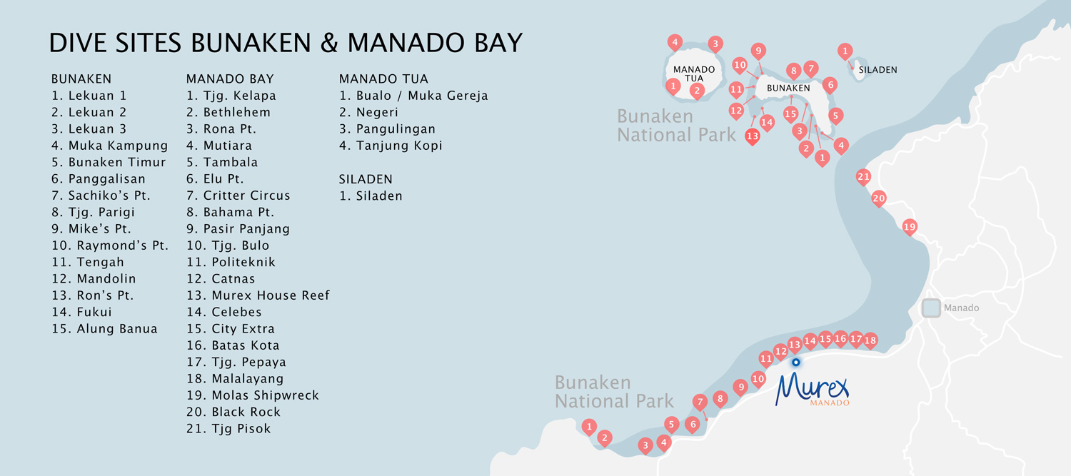 Here are some of the dive sites in Manado & Bunaken. Feel free to ask us if you would like to know more about these and other dive sites.